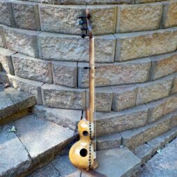 This is the latest edition of the 5 string fretless Greenman Gourd banjo. Every greenman is a one of a kind.(I can’t carve the same thing twice) Handcarved and colored peghead, flat canteen gourd ,this one is sure to be a favorite.