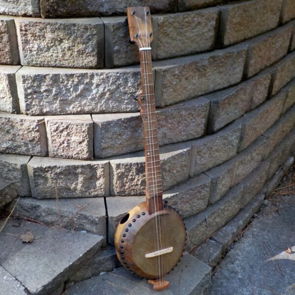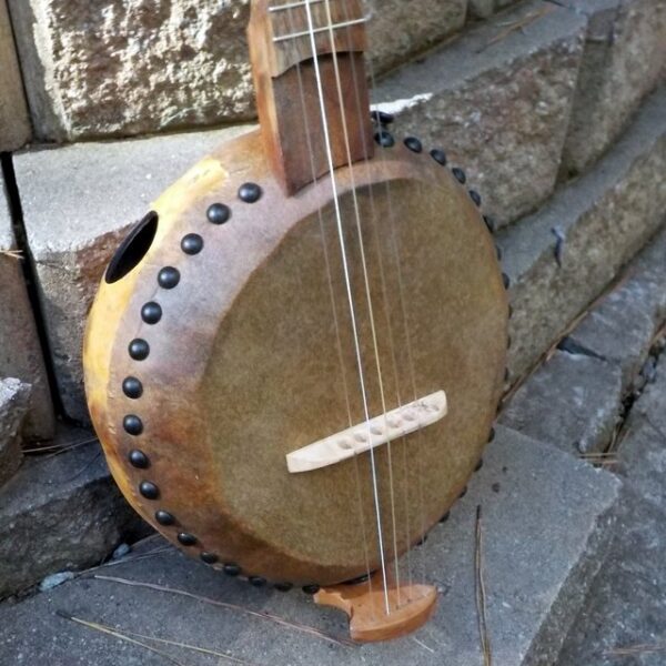Gourd banjo #540 Earthtone is a handcrafted 5-string fretted banjo, featuring a natural gourd body that produces a warm, earthy resonance. Its rustic aesthetic and organic tone create a unique playing experience, blending tradition with artistry. Ideal for musicians seeking authenticity, character, and soulful sound in their instrument.